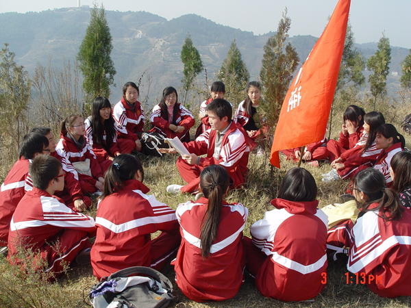 下午一点十五分,由汉语言文学2009级2班学生组成的第二连率先到达牛蹄岭,接着其他各连也先后抵达目的地。