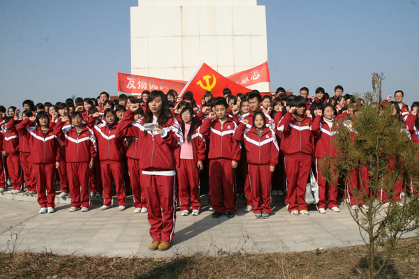 在短暂休息后,大家在牛蹄岭战斗纪念碑下分组开展学习讨论。最后,在学生干部的带领下,同学们面对鲜艳的党旗在纪念碑下进行了宣誓,大家决心努力学习,努力工作,争取早日加入党组织。