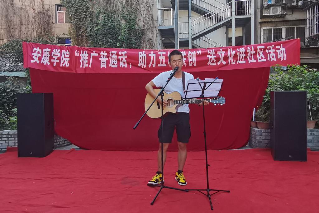 为推进社区群众讲好普通话,丰富群众文化生活,助力城镇社区精神文明建设和新民风建设,9月4日,由开元官网团委主办、文学与传媒学院影视戏剧社承办的送文化进社区文艺汇演在育才社区开展,育才社区党支部书记陈治改、团委副书记张慧、文传学院党总支副书记杨海蓉等,与居民群众共同欣赏了一场城市创建的文化盛宴。