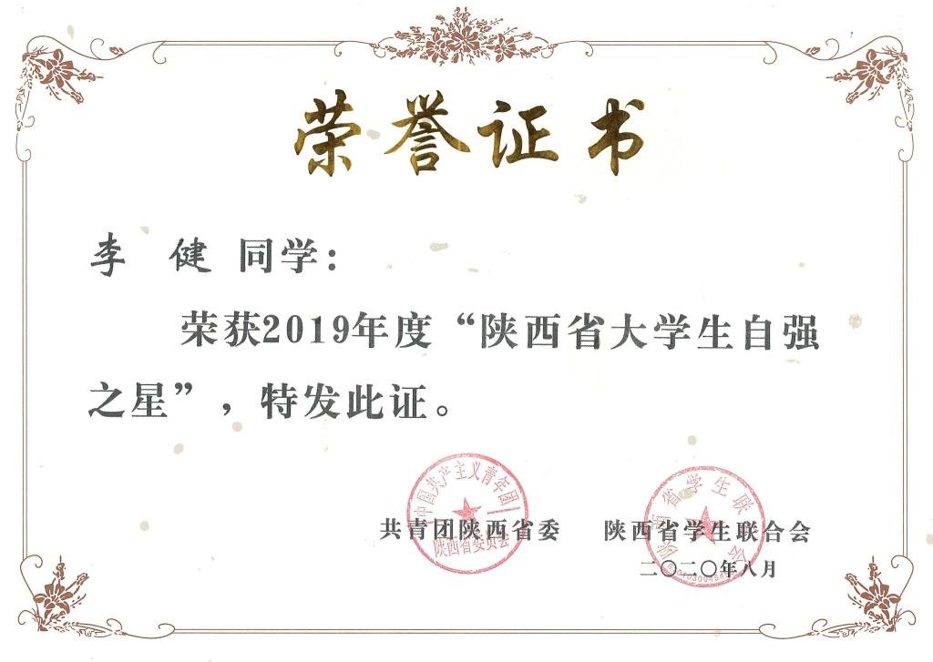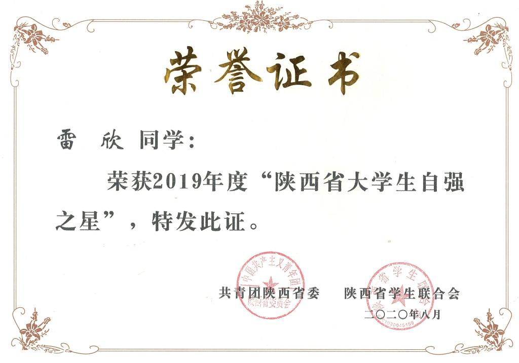 日前,2019年度“陕西省大学生自强之星”名单揭晓,开元官网体育学院雷欣、旅游与资源环境学院李健2名同学获“陕西省大学生自强之星”荣誉称号。