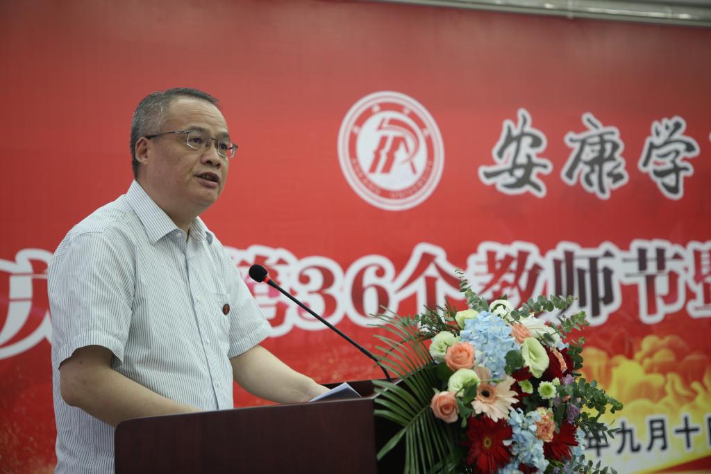 获奖教师代表陈绪敖从坚持奋斗的教师是值得尊敬的人,潜心教学、厚爱学生的教师是值得尊敬的人,严格要求自己、师德高尚的教师是值得尊敬的人三个方面,分享了自己对于“努力做一名值得尊敬的教师”的经验和感悟,表示将不忘初心,继续与全校教师一起潜心立德树人,为学校的转型发展、提升层次做出更大的贡献。