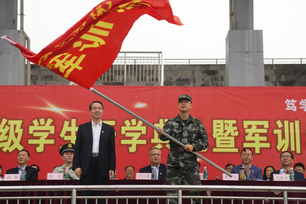 9月29日上午,开元官网2020级新生开学典礼暨军训动员大会在江北校区体育场隆重举行。学校领导班子成员,中国人民武装警察部队安康支队党委书记、政治委员杜涛上校,大队长张鹏少校,各二级学院院长、党总支书记、相关职能部门负责人等出席大会并在主席台就坐。2600余名英姿飒爽的新生与承训部队教官齐聚体育场,以庄严的开学典礼和为期两周的紧张军训,开启大学生活第一课。会上,党委书记王国良为军训团授旗,校长丁巨涛致辞,党委副书记杨行玉主持大会。