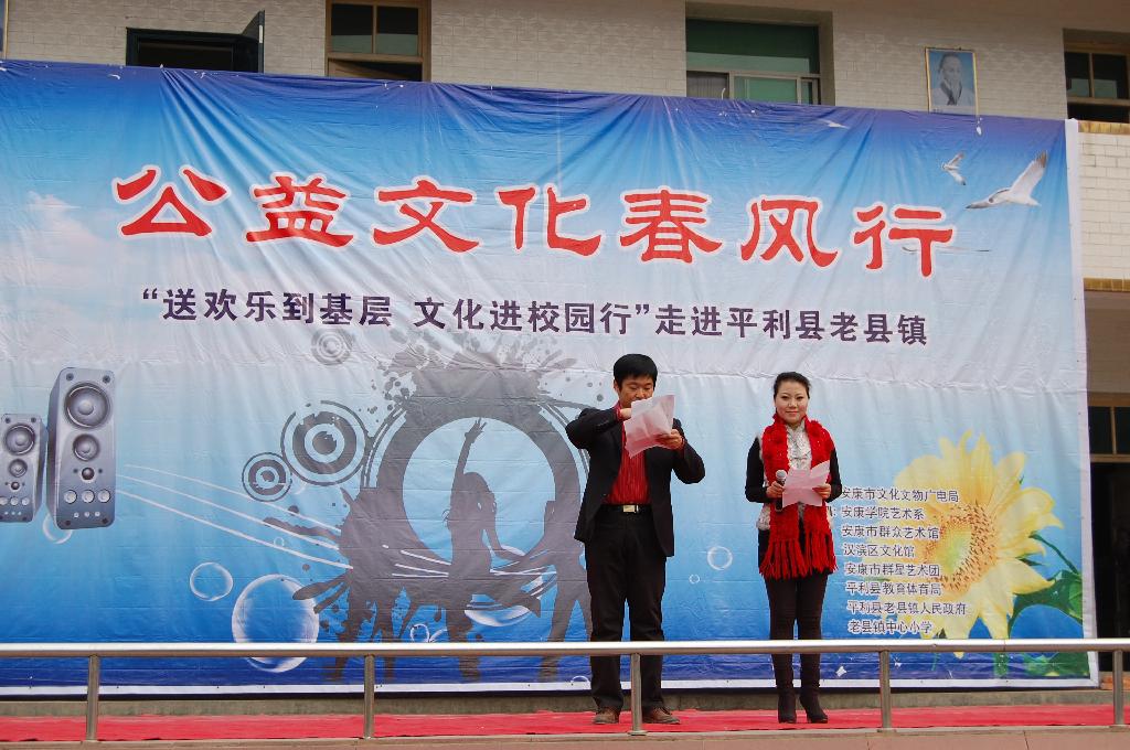 由安康市文化文物广电局主办,KY开元集团官网艺术系、安康市群艺馆、安康市青少年宫等单位承办的我市一年一度的“文化艺术三下乡”活动,于2011年1月14日在平利县老县镇拉开了帷幕,受到当地领导和群众的热烈欢迎。