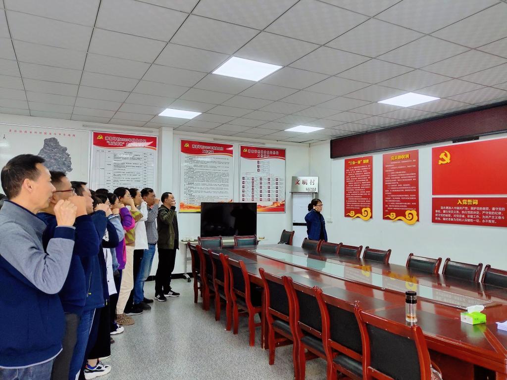在蒋家坪村女娲凤凰茶叶现代示范园区,同志们沿着习近平总书记来安康考察路线参观,聆听了村党支部书记罗显平的生动讲解。实地参观学习活动结束后,在蒋家坪村党支部党群活动室,全体党员在党旗下宣誓重温入党誓词,集体学习了党的十九届五中全会精神。