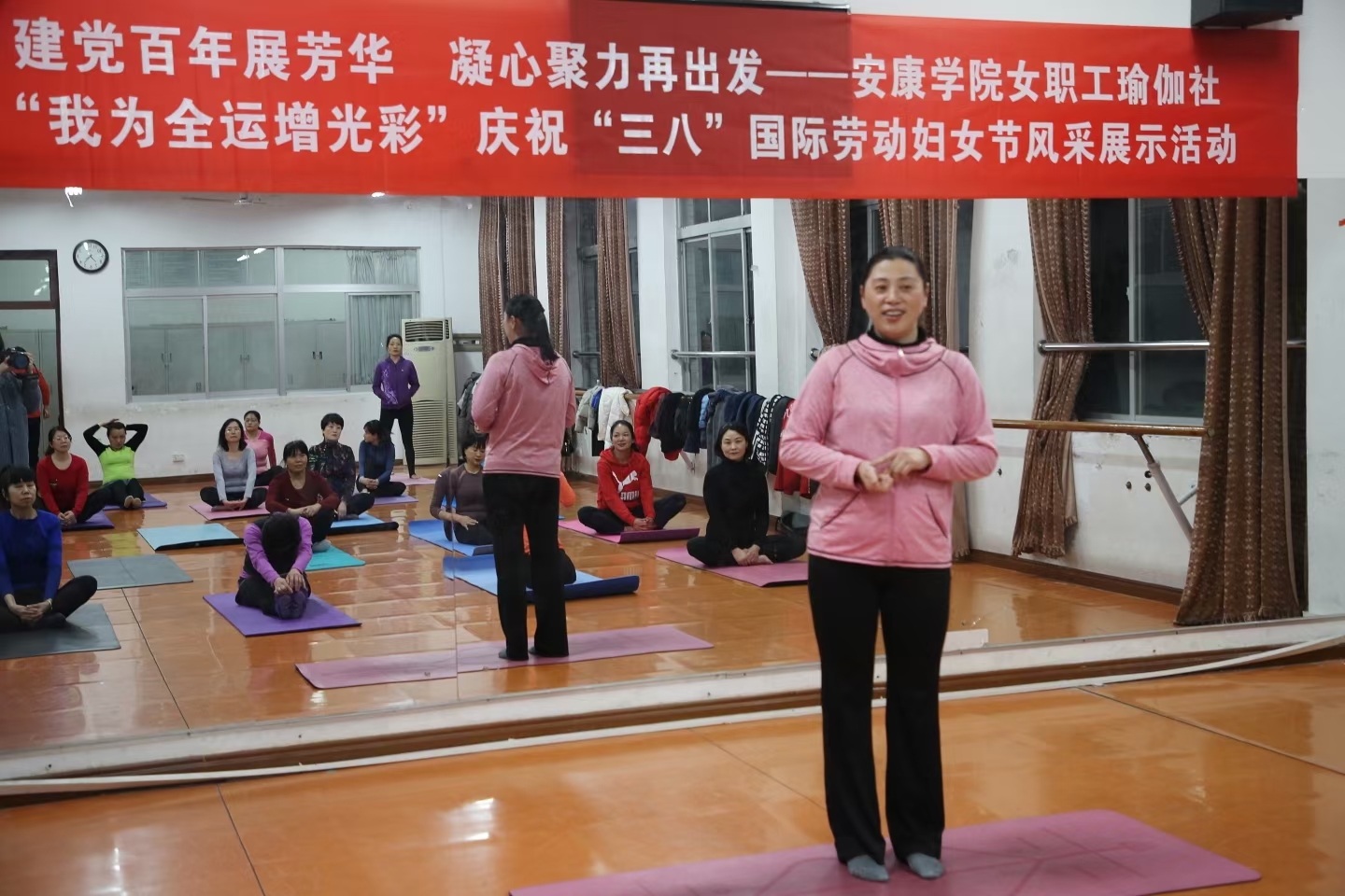 为丰富女职工精神文化生活,促进女职工全面发展,迎接第十四届全运会,在第111个“三八”国际劳动妇女节即将来临之际,开元官网女职工瑜伽社开展了庆“三八”健身展示活动,校工会兼职副主席、女工委主任肖红香,工会办公室主任胡敏,女工委委员马玉琴,以及20余名女职工共同参加了本次活动。