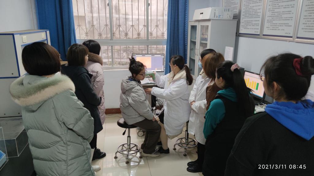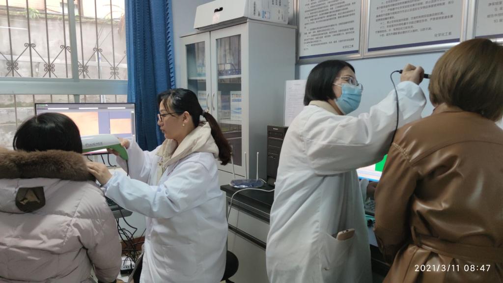 化妆品技术工程系的寇莹,张芳两位老师采用德国CK多探头皮肤测试仪MPA10,为全校的女教工和女学生免费检测了皮肤水分、油脂、红色素、黑色素等,并对她们皮肤保养提供宝贵的建议。