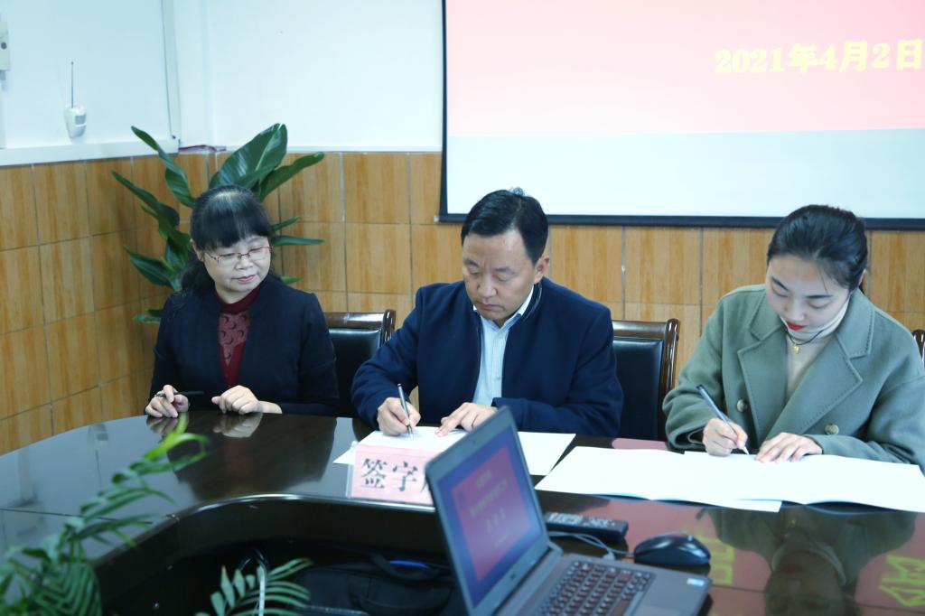 钟生海代表学校与受聘导师和被培养青年教师签订了三方目标任务书。