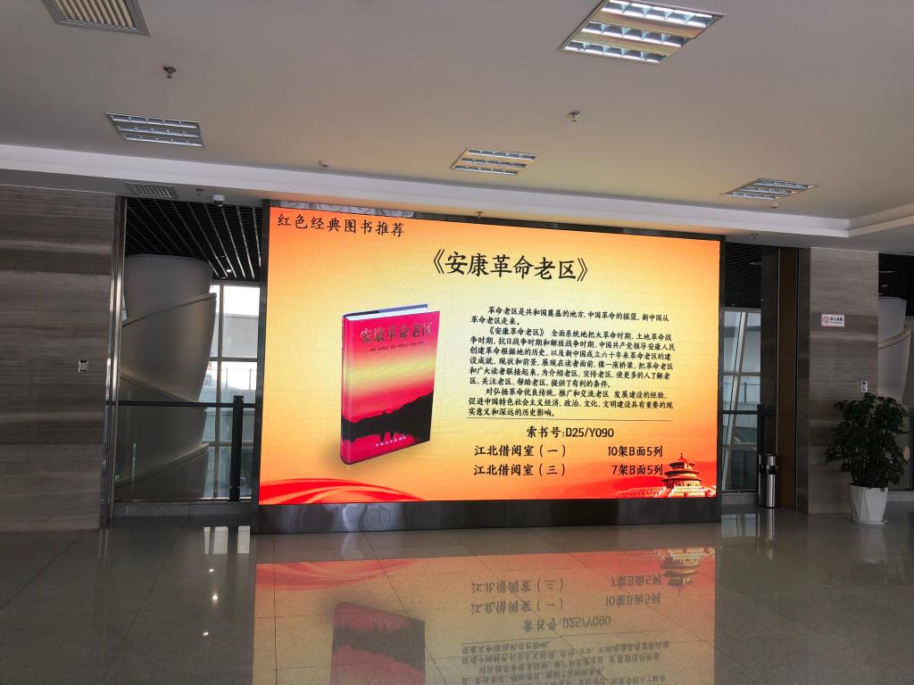 ——开辟空间服务,推广红色影视。图书馆发挥硬件设施优势,利用江北馆二楼大厅显示屏推荐红色书目,并在馆内特定区域开设视听专区,播放红色经典影视作品20余个。