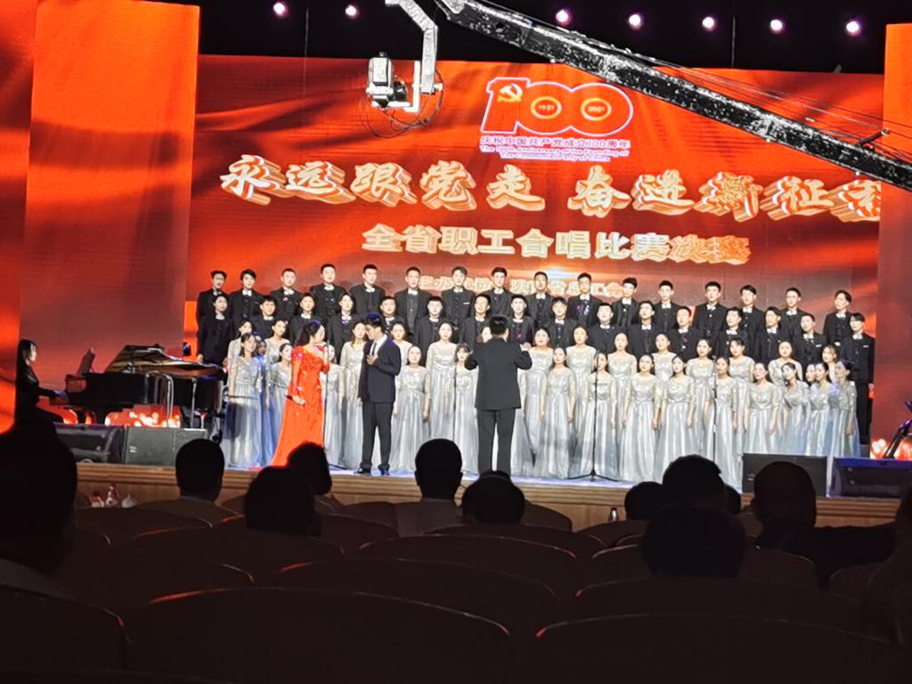 此次全省职工合唱比赛既是党史学习教育的组成部分,也是工会系统迎接建党100周年的系列活动之一。学校高度重视、精心安排,由校工会牵头、团委、艺术学院协助整个演出人员选拔和节目排演工作,由专业教师和年轻教职工组成合唱团报名参赛。大家克服困难,积极准备,合唱视频经过预赛专家评审,最终被选入决赛。
