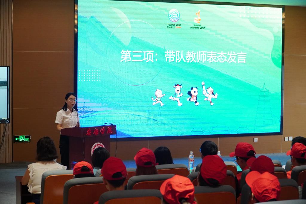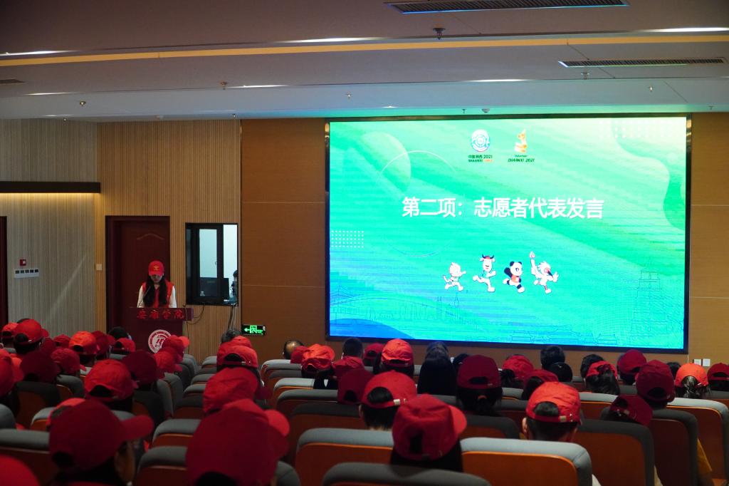 誓师动员大会在庄严的国歌声中拉开帷幕,开元官网学生志愿者张玥、带队教师代表付路静代表全体志愿者郑重承诺:将秉承“奉献,友爱,互助,进步”的志愿者精神,严格要求自己,遵守服务守则,牢记行为规范,发扬务实,求实的工作作风,以一流的服务质量和饱满的精神状态,为十四运会马拉松游泳项目圆满成功,贡献出自已的青春力量!