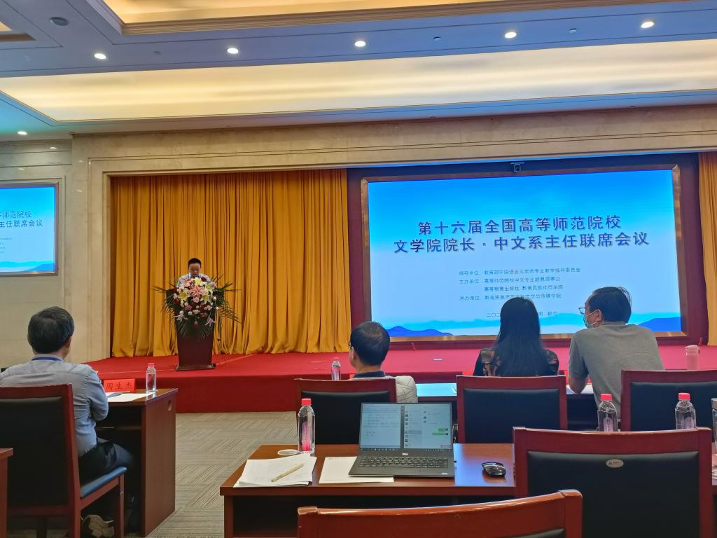 7月21-22日,第十六届全国高等师范院校文学院院长/中文系主任联席会议在黔南民族师范学院召开,教育部直属的6所师范大学,上海师大、南京师大等26所省属重点师范大学及地方师范院校共计84所学校的148名文学院院长/中文系主任参加了会议。会议开幕式上,教育部高等教育司人文社科教育处处长张庆国通过视频向大会致辞。