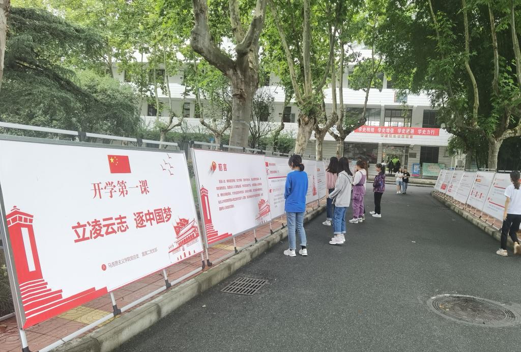 制作主题展板,引导立志逐梦。由直属二党支部和马克思主义学院联合制作的“立凌云志 逐中国梦”的主题宣传展板展放在校园林荫道两旁,吸引着同学们频频驻足、凝神观看,进一步激发了青年学生把自己的小我融入国家的大我、人民的大我之中,在实现中国梦的伟大实践中放飞青春梦想、激扬青春力量,书写无愧于时代的青春之歌和精彩人生。
