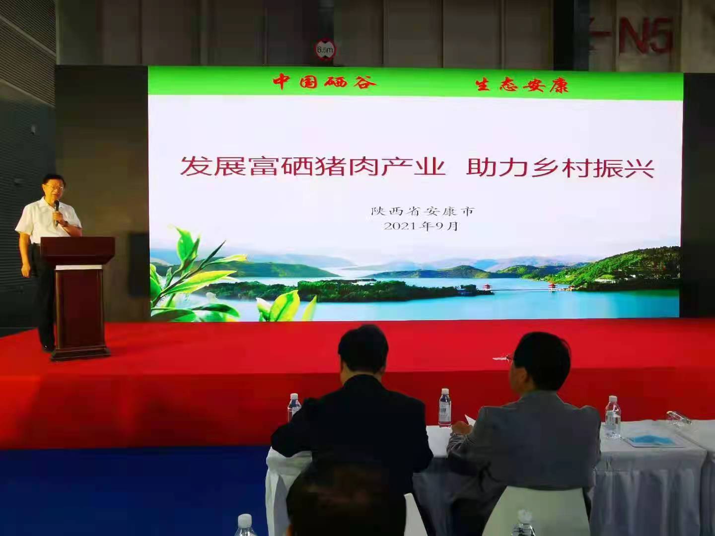 中国肉类协会总工程师张原飞在会上宣读了团体标准发布的公告,权群学研究员代表标准起草小组以“发展富硒猪肉产业,助力乡村振兴”为题介绍了安康富硒产业发展的现状、标准的编制过程和主要技术指标确定的依据。阳晨牧业、贝贝佳等生产企业现场展示了“康硒谷”“贝贝佳”等富硒猪肉产品。