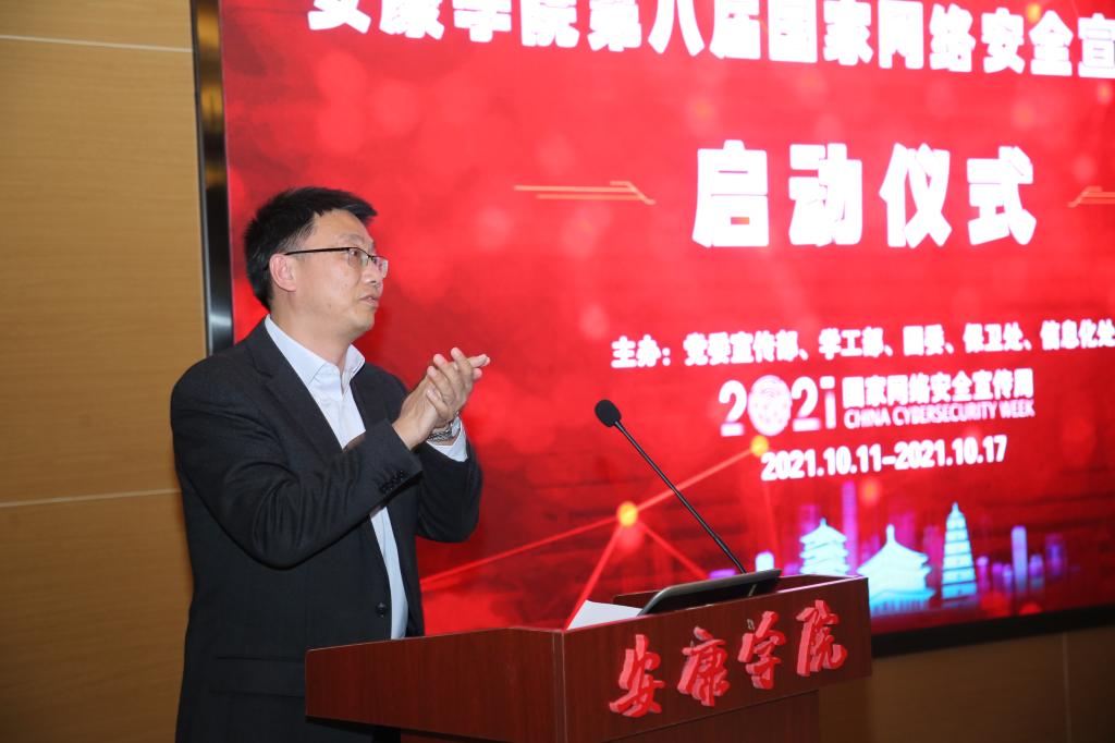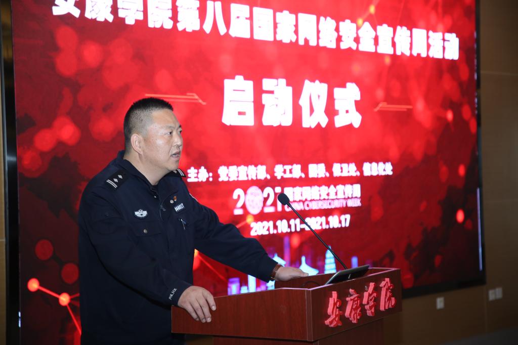 为深入学习贯彻习近平总书记关于网络安全的重要讲话精神,扎实做好国家网络安全宣传周各项宣传活动, 10月11日,由信息化处、党委宣传部、学工部、团委、保卫处共同主办的第八届“国家网络安全宣传周”活动启动仪式在江北校区图书馆报告厅举行。党委委员、副校长张东红出席本次活动,市公安局网安支队、高新分局、花园路派出所民警以及学校相关部门负责同志、学生会干部、各二级学院160余名学生代表参加了启动仪式。仪式由信息化处处长付永平主持。