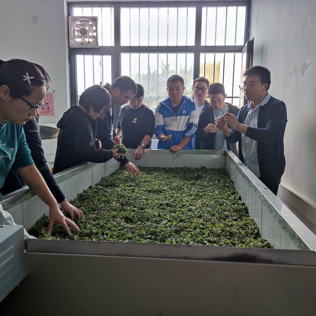 在茶叶加工现场,老师手把手演示操作,讲授绿茶的手工和机器制作的技术难点和要领,在学员实践训练的过程中,老师全流程跟进指导,为学员解疑答惑,老师与学员间互动良好。