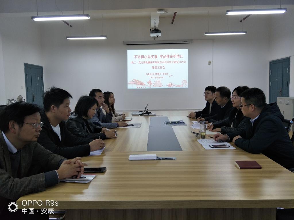 10月29日下午,教工一党支部书记谭义恒在江北逸夫楼801室主持召开了支部会议,研究了《安康瀛湖库区PH值等五种物质指标采样检测分析方案》,确定了采样工作领导小组,安排了具体工作。支部党员、水质监测项目负责人何家理教授对采样前期准备、工作流程、采样过程中的技术环节和水上作业安全问题进行了强调。