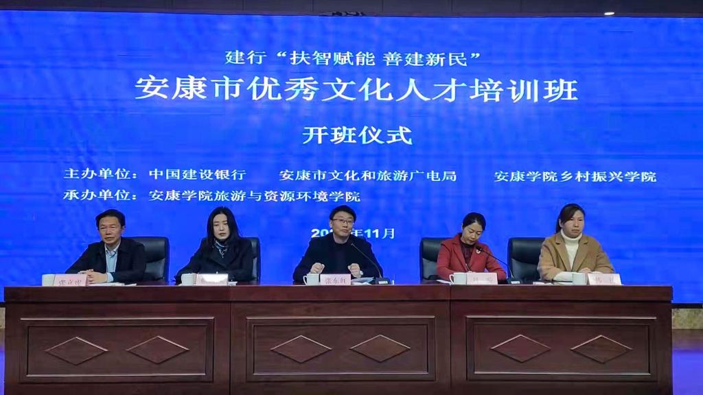 11月4日上午,由中国建设银行、安康市文化和旅游广电局、KY开元集团官网乡村振兴学院联合主办,开元官网旅游与资源环境学院承办的“扶智赋能 善建新民”安康市优秀文化人才培训开班仪式在安康宾馆三楼报告厅举行。KY开元集团官网副校长张东红,安康市文化和旅游广电局副局长王应珍、刘璇,旅游与资源环境学院院长储玖琳、党总支书记张立虎、副院长肖薇薇,继续教育学院副院长韩涛,及参训学员百余人参加了开班仪式。开班仪式由文化和旅游广电局副局长刘璇主持。