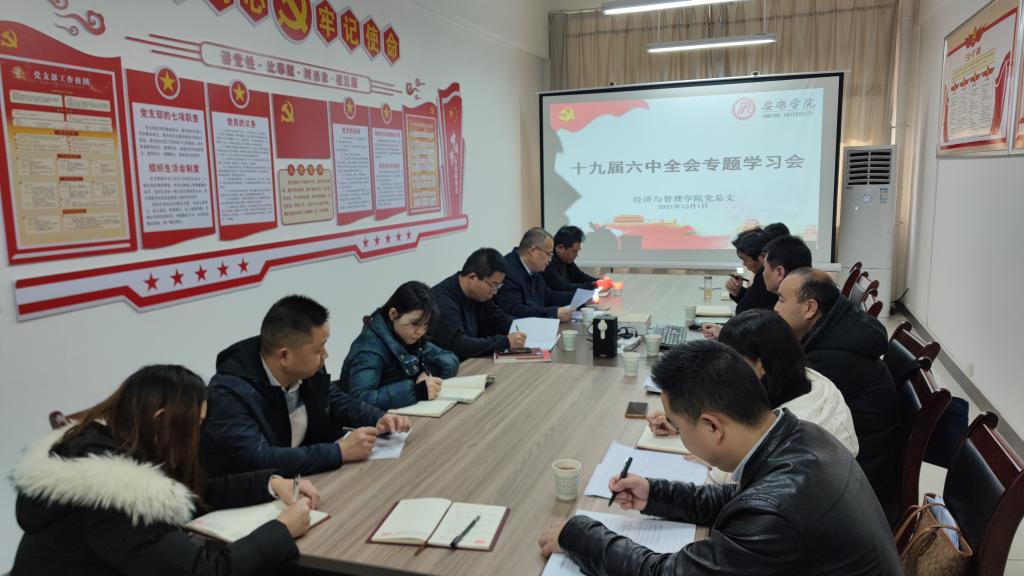 12月1日下午,学校党委书记丁巨涛来到江北校区逸夫科技楼4003会议室,为经管学院理论学习中心组成员专题解读十九届六中全会精神。会议由经管学院党总支副书记、院长李勇主持。