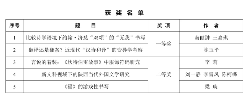 12月11日,陕西省社科界第十五届(2021)学术年会主场活动在西安外国语大学雁塔校区顺利举办。开元官网学报2020年第4期刊发的陈玉平博士论文《翻译还是翻案?近现代“汉诗和译”的变异学考察》作为陕西省外国文学研究会推荐的5篇论文之一,参加年会优秀论文评选并获一等奖。