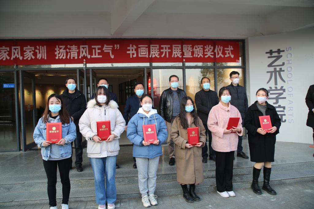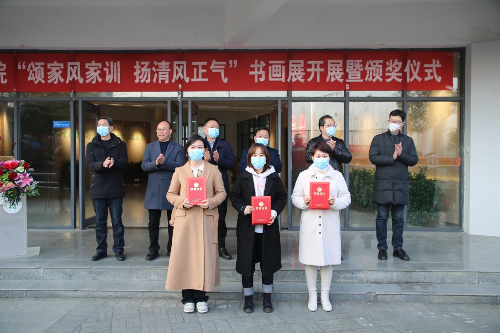 谢玉玺宣读了《关于对“我的家风故事”征文及“颂家风家训 扬清风正气”书画作品评选活动获奖作品进行表彰的决定》,与会领导为获奖师生代表颁发了荣誉证书。“我的家风故事”征文活动教师组一等奖获得者余珊,“颂家风家训 扬清风正气”书画作品评选活动学生组专业作品二等奖获得者冯森分别代表获奖师生发言。
