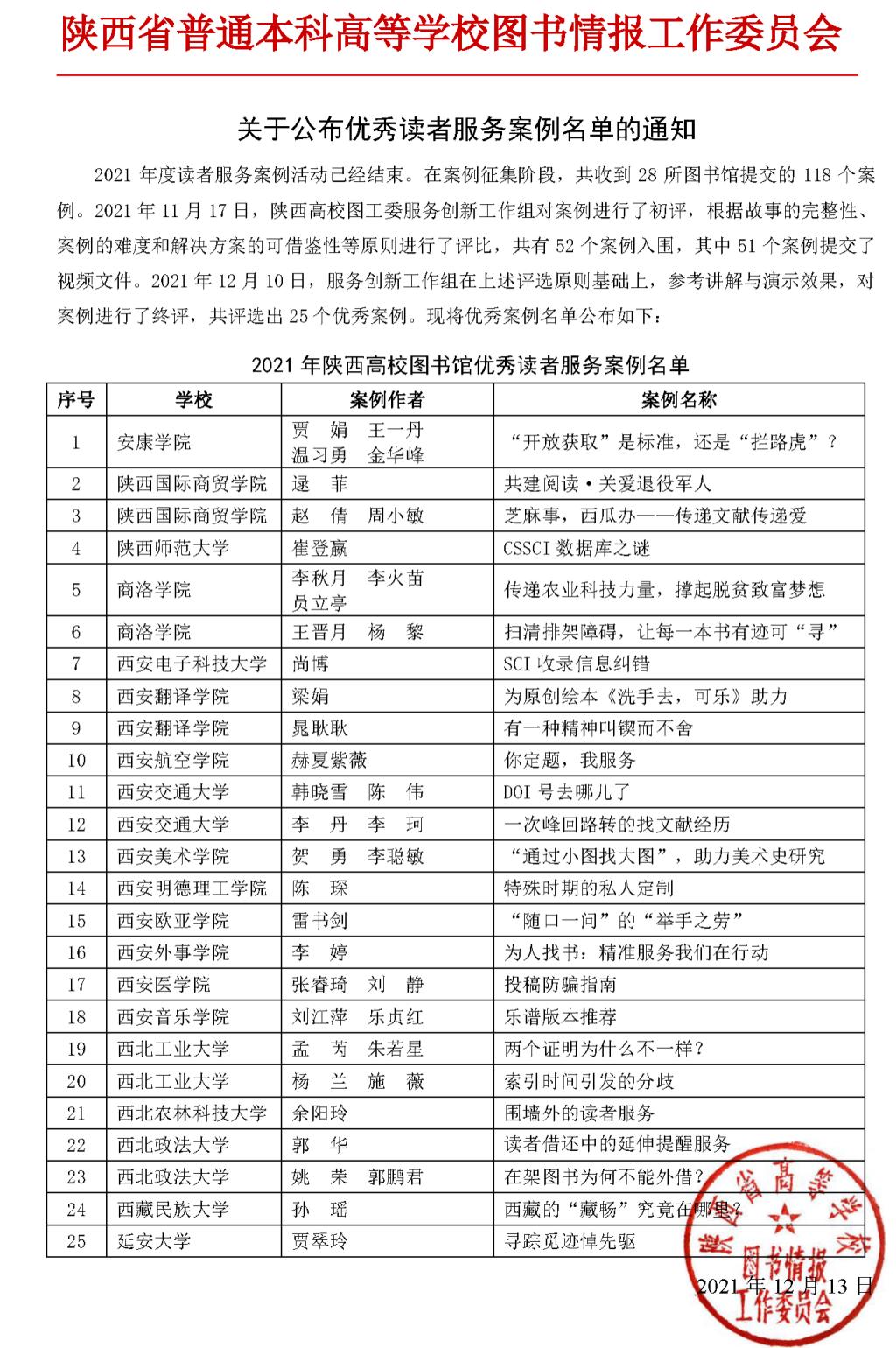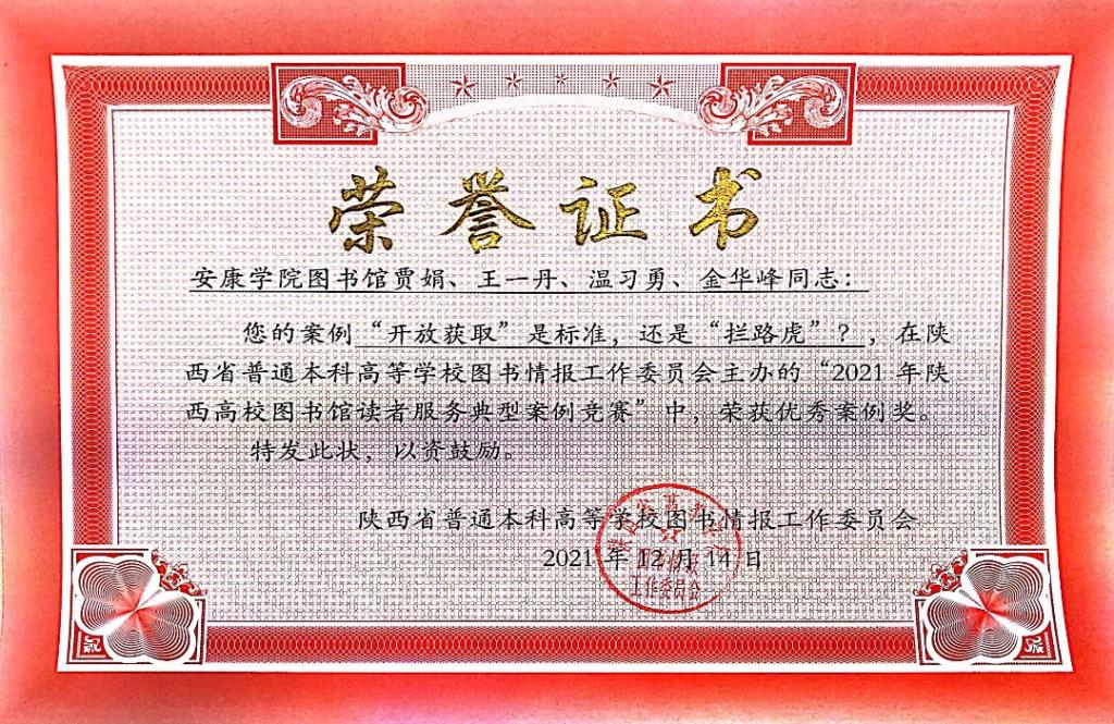 近日,陕西省普通本科高等学校图书情报工作委员会公布了2021年陕西高校图书馆读者服务典型案例优秀奖名单,开元官网图书馆提交的案例《“开放获取”是标准,还是“拦路虎”?》成功获奖。
