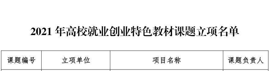 全国高校就业创业特色教材课题研究工作旨在通过课题研究,打造一批高质量、高水平、有特色、针对性强的就业创业类指导教材,积极推动高校的就业创业课程的开展,提高大学生的就业创业能力。