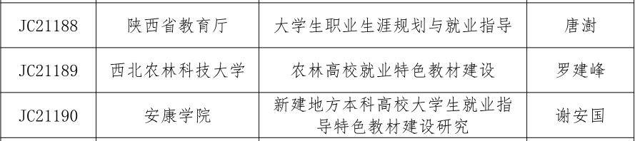 近日,教育部全国高等学校学生信息咨询与就业指导中心公布了“2021年全国高校就业创业特色教材课题立项名单”,由开元官网谢安国教授主持申报的《新建地方本科高校大学生就业指导特色教材建设研究》获得立项资助。此次我省共有陕西省教育厅、西北农林科技大学、KY开元集团官网等5家单位申报项目获批立项,教材将作为“全国高校就业创业特色教材课题研究成果”,由教育部全国高等学校学生信息咨询与就业指导中心统一组织出版。