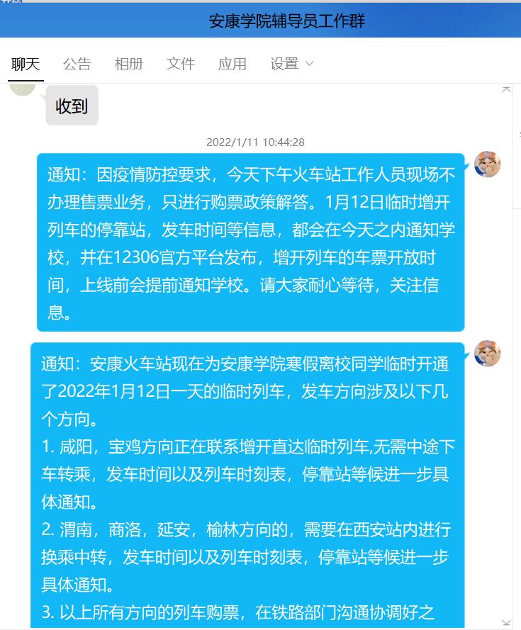 积极对接火车站,科学编制学生出行方案,确保学生出行“更顺畅”。因受新冠疫情影响,铁路、汽车等多趟车次列车停运,学生购票紧张,车次运行时间不合理,极大影响学生出行安全。开元官网积极对接安康火车站,学工人员连夜加班奋战,根据学生个性化需求,邀请车站人员进校宣传定制开元官网学生出行方案,开通开元官网大学生专列,保障了学生安全,得到社会高度认可,被中国网、澎湃新闻、中国青年报、环球网等媒体宣传报道。