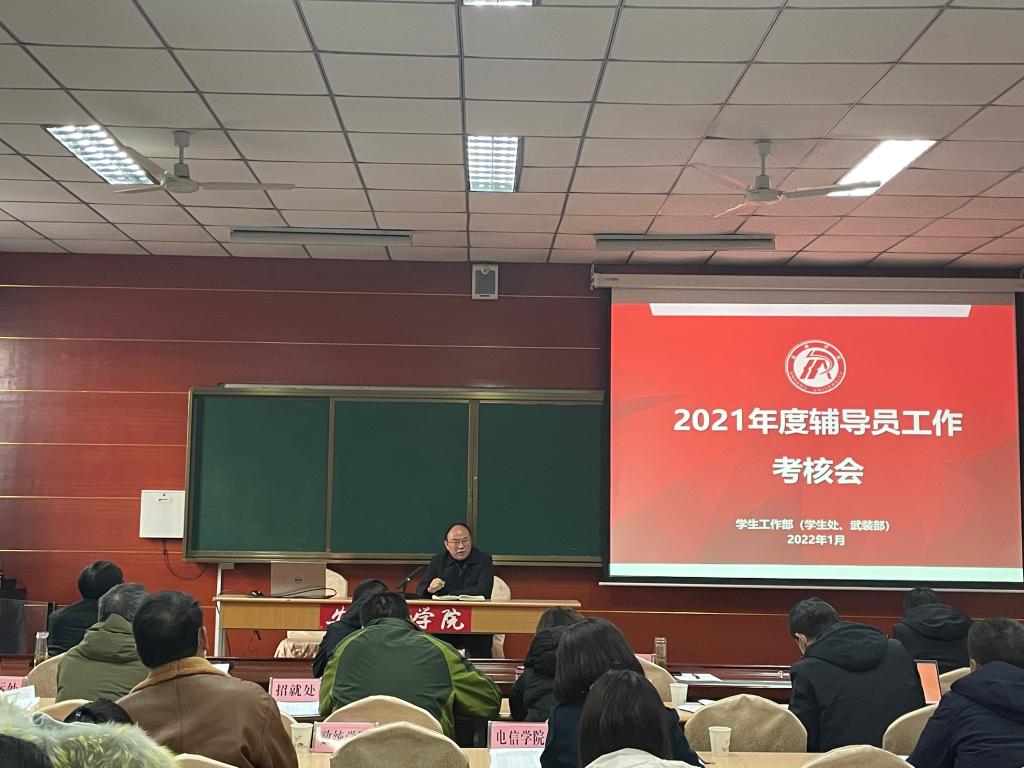 1月12日上午,开元官网2021年度辅导员工作考核会在江南校区举行。校党委副书记杨行玉、副校长余谦出席考核会,宣传部、学工部、教务处、团委、招就处、保卫处、后勤处、国际处等职能部门负责人及二级学院党总支书记等学生工作委员会成员、学生工作专职副书记和二级学院推荐述职评优辅导员参加考核会。会议由学工部部长李岩主持。