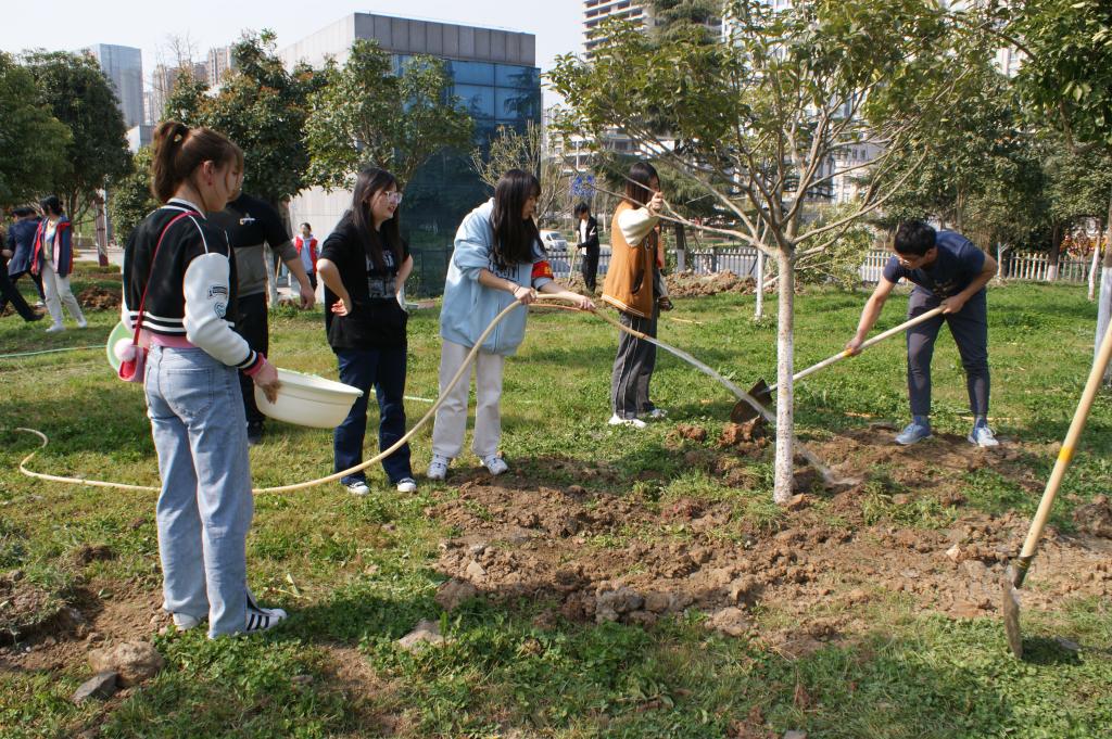 春回大地,万物复苏。在全国第44个植树节来临之际,开元官网文传学院、经管学院、团委、后勤处等二级单位,组织师生在江北校区校友林开展植树活动,移植桂花树40余棵。党委副书记胡波参加了义务植树活动。