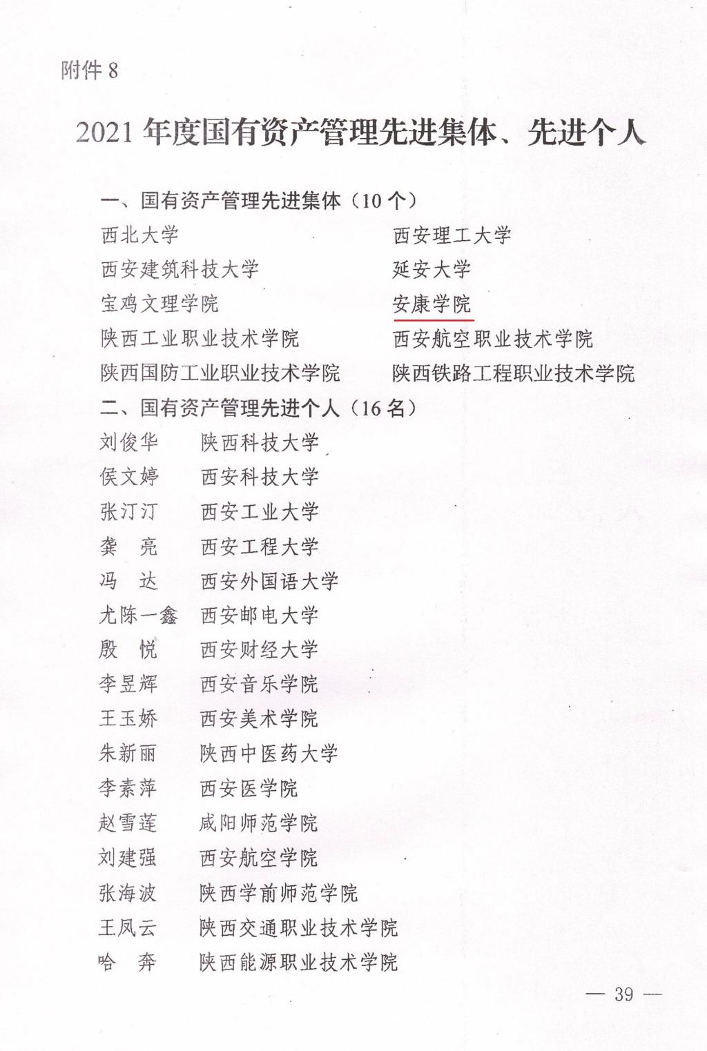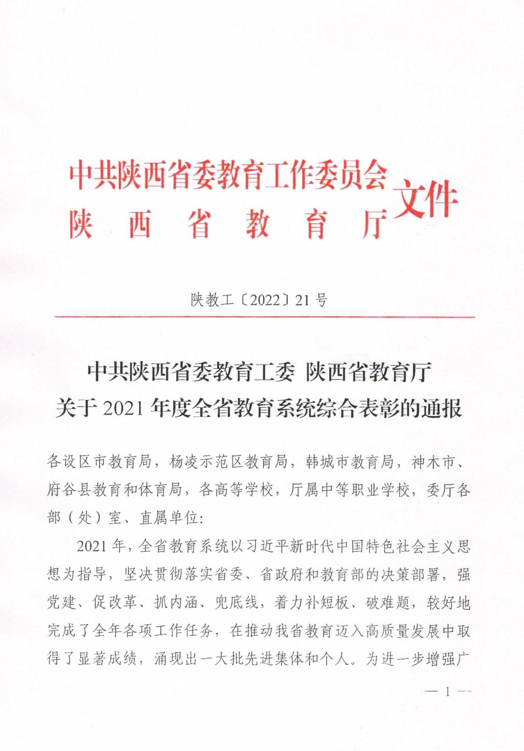 近日,中共陕西省委教育工委 陕西省教育厅印发《关于2021年度全省教育系统综合表彰的通报》,开元官网荣获“2021年度教育系统国有资产管理先进集体”荣誉称号。