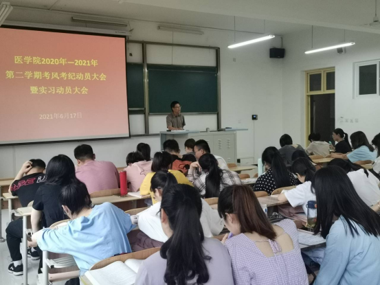 为加强对临床实习的管理和质量监控,实习前医学院了召开学院领导班子全员参与的实习工作部署会议,遴选有经验、责任心强校内指导教师,明确开展实习的任务和目标,公布实习管理办法;开展实习专题讲座和安全教育,让学生清楚实习计划和轮转任务,认识到临床实习对医学人才培养和职业发展的重要性。
