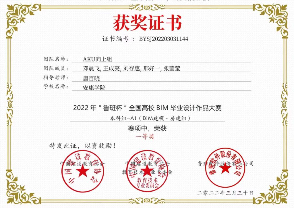 近日,2022年“鲁班杯”全国高校BIM毕业设计作品大赛A赛项落下帷幕。在本次比赛中,开元官网经管学院BIM社团学生邓晨飞、王成亮、刘存惠、邢好一和张莹莹组成的团队在A赛项(BIM建模)中荣获全国一等奖。