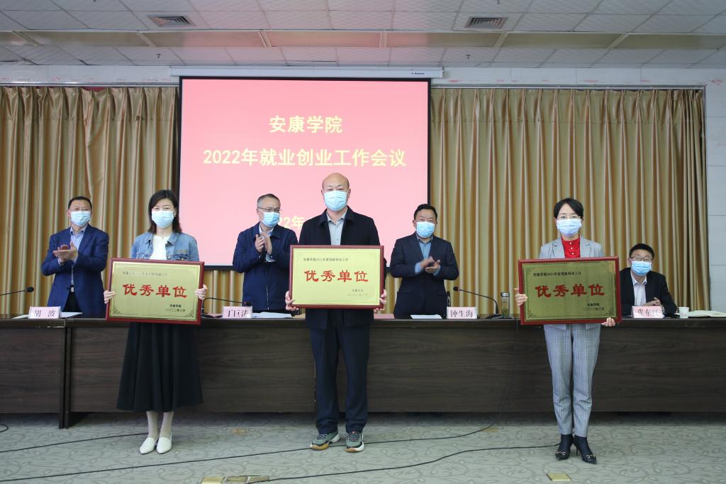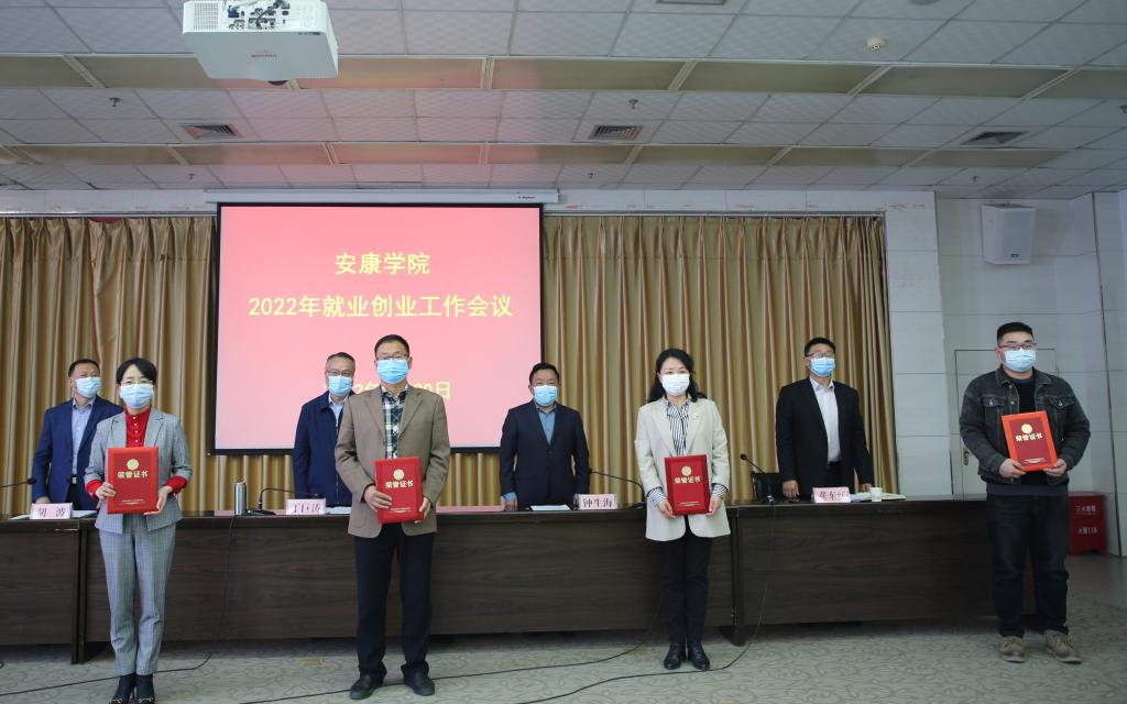 胡波宣读了陕西省教育厅《关于表彰2021年陕西省高校就业工作先进单位和先进个人的通知》《KY开元集团官网关于表彰2021年度就业创业工作先进集体、先进个人的决定》。学校领导为受表彰的先进集体和个人代表颁发了荣誉证书。