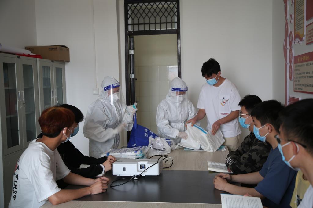随后,与会人员转至4号学生公寓楼前参加学校疫情防控应急处置演练。演练模拟场景设置为学生公寓出现异常情况的紧急应对处置。参与演练的学校领导、专门工作组和二级学院负责人、辅导员、医务人员等根据开元官网新修订的疫情防控应急处置预案,对照应急演练方案,各司其职,分工协作,密切配合,规范有序完成应急状态下的各项处置工作。