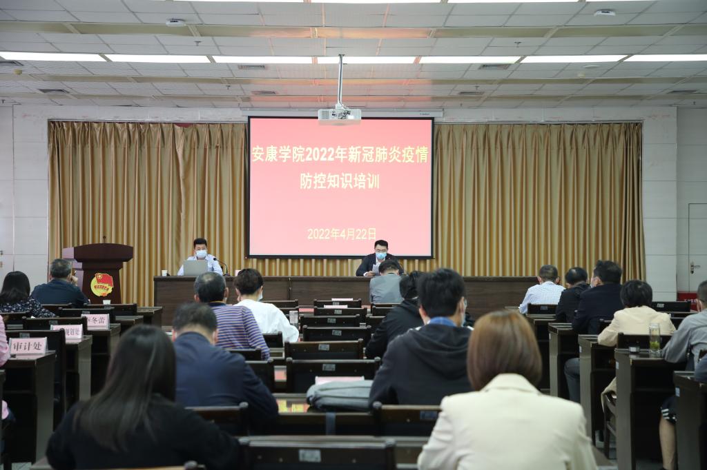 为提升学校应对突发疫情的处置能力,进一步加强学校疫情防控工作,4月22日下午,学校疫情防控工作领导小组组织开展疫情防控知识培训和应急处置演练,党委副书记胡波,各专项工作组负责人、各二级学院负责人和学校疫情防控相关工作人员参加活动。汉滨区疾控中心传染病防控科科长张展魁受邀开展疫情防控知识培训会,新城办事处马庆庆,育才社区陈治改、李冬蕾参与指导。