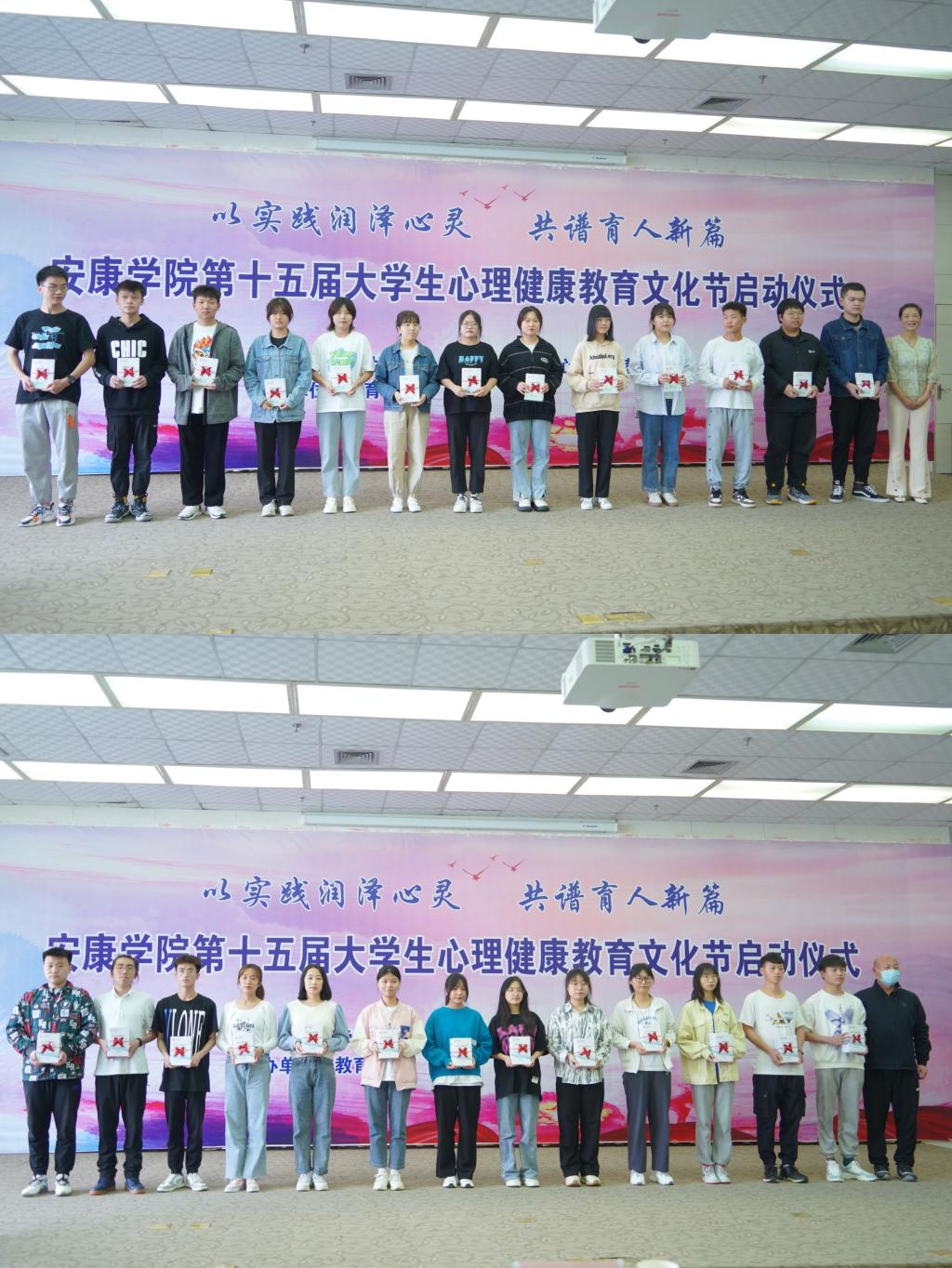 与会嘉宾为2021级班级心理委员、宿舍长代表发放《心理委员工作手册》和《宿舍长心理健康工作手册》。
