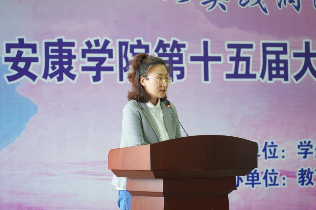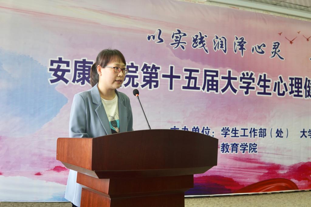 教育学院学工办主任郇红作为心理健康教育教师代表发言,号召大家关注心理健康,保持身心愉悦,积极参与到大学生心理健康教育文化节各项活动中来。