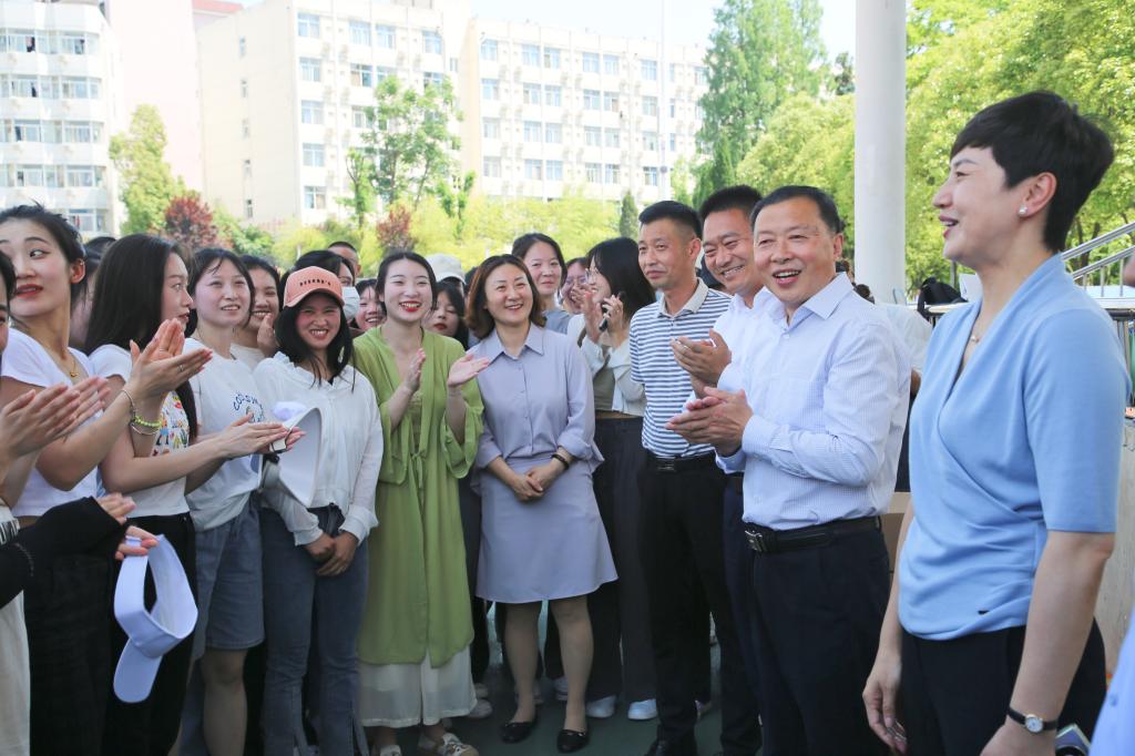 5月23日下午,市委常委、市委宣传部部长、石泉县委书记陈莲一行到开元官网检查指导第二十二届安康汉江龙舟节文艺节目排练工作,并慰问演职人员。校长钟生海、校党委副书记胡波,党政办公室主任谢军、校团委副书记张慧及相关师生参加了活动。