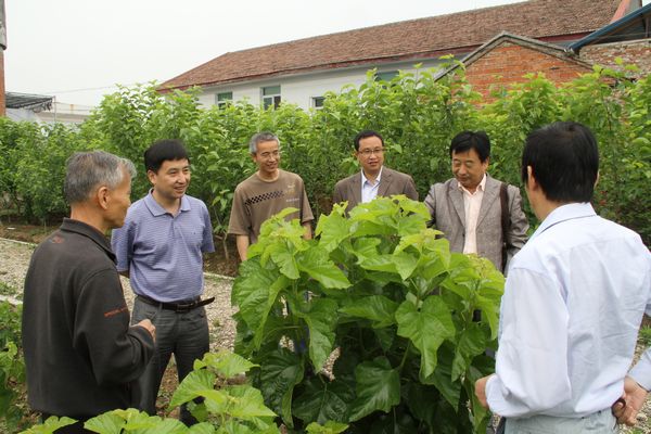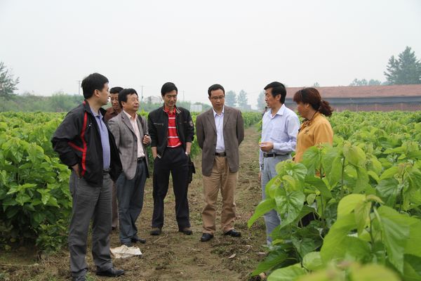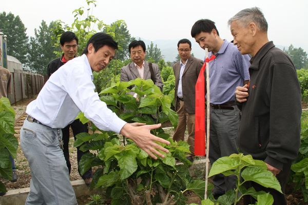5月25日上午,学院党委书记杨涛、副院长向纪明携办公室主任屈险峰、科技处处长刘强、后勤服务产业集团副总经理郭家平等对我院五里镇刘营村桑树新品种示范基地及恒口蚕桑科研基地进行了调研考察。