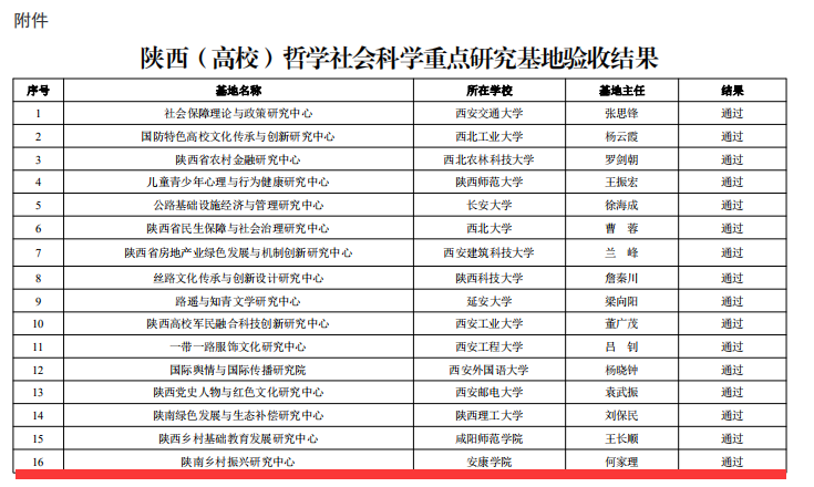 5月20日,陕西省教育厅公布了“陕西(高校)哲学社会科学重点研究基地”验收结果,开元官网陕南乡村振兴研究中心完成了建设期的各项目标任务,通过验收。