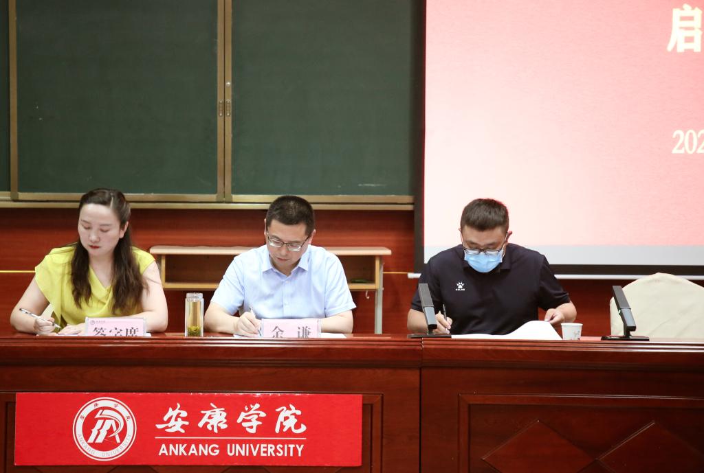 余谦代表学校与受聘导师和被培养青年教师签订了三方目标任务书。