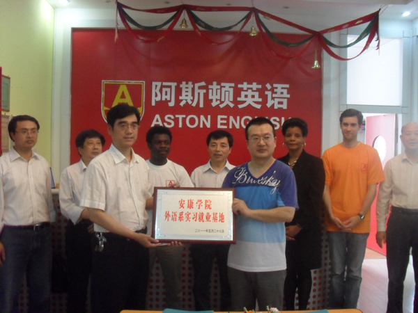 安康阿斯顿英语学校是阿斯顿国际教育集团在安康设立的唯一一所专业英语培训学校,有专职外教4人。近年来,我院有外语、小教英语、市场营销等50多名学生在此顶岗实习,部分学生就业,此次合作意向的达成,为我院学生实习就业起到了一定的促进作用。