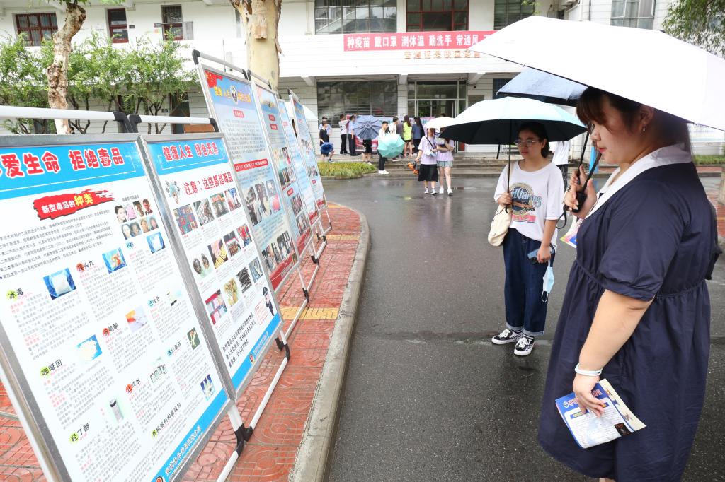 活动现场通过悬挂横幅、设置咨询台、展示毒品仿真模型、摆放禁毒展板、发放禁毒宣传资料、推广禁毒微信公众号进行禁毒反毒签名等方式,向广大师生宣讲毒品的种类、危害以及如何远离毒品、防范毒品等知识。