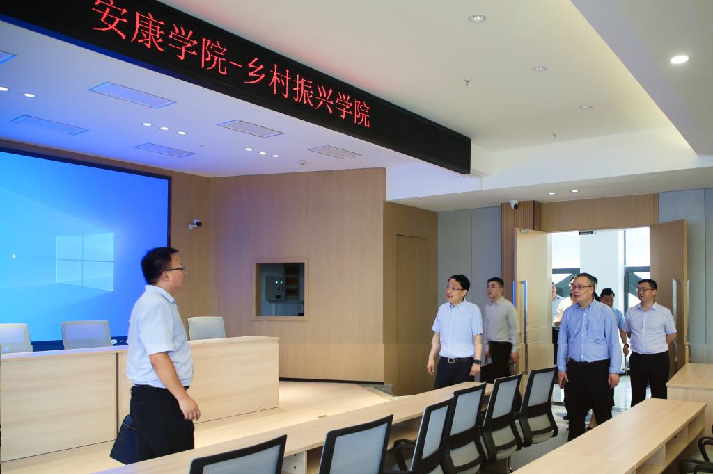 6月30日,安康市市委常委、副市长殷勇带领汉滨区副区长苏静、乡村振兴局副局长蒋帅来校调研指导乡村振兴学院培训平台建设,党委书记丁巨涛、校长钟生海、副校长余谦陪同调研。