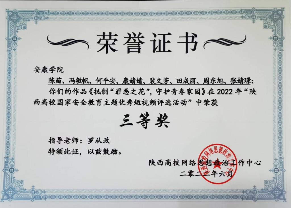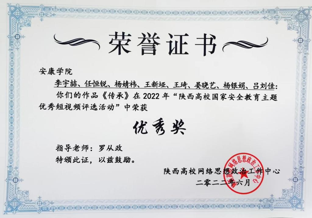 近日,由陕西高校网络思想政治工作中心主办的“2022年陕西高校国家安全教育主题优秀短视频评选活动”结果揭晓,开元官网易班发展中心推荐的学生作品《抵制“罪恶之花”,守护青春家园》《传承》分别荣获三等奖和优秀奖。