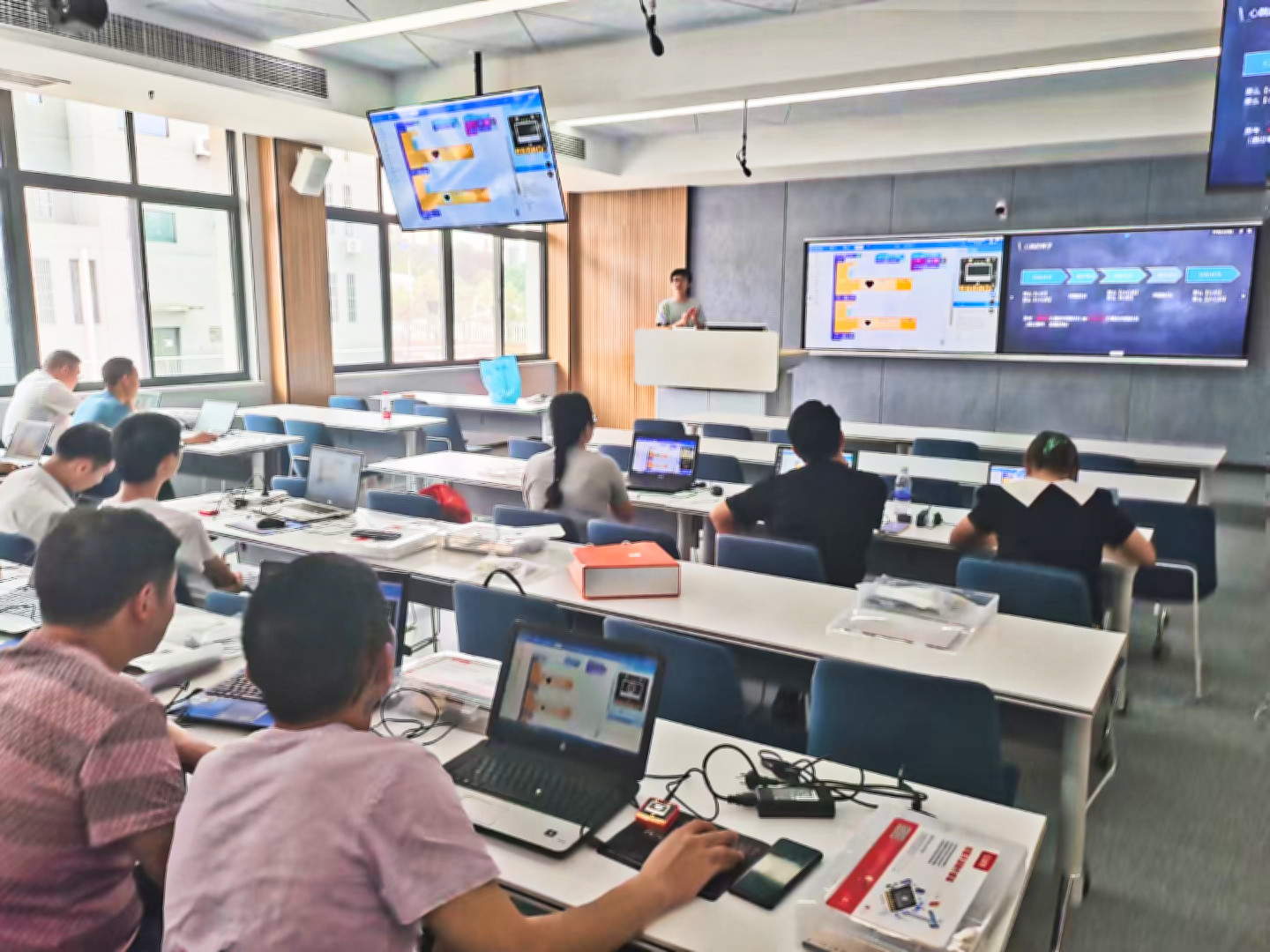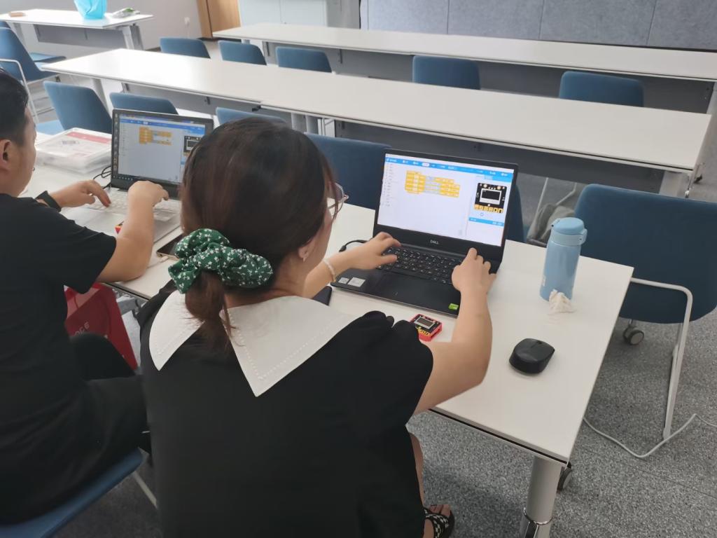 本期培训主要包括Mpython和Scratch两种少儿编程教育软件的学习,采取理论知识与实践操作同步进行的方式,安排校内资深教师,针对山区青少年儿童的学情,设计了一系列由浅入深、寓教于乐的案例。通过对这些编程案例的原理讲解和实践操作,帮助参训教师掌握了少儿编程的基本方法和教学思路。