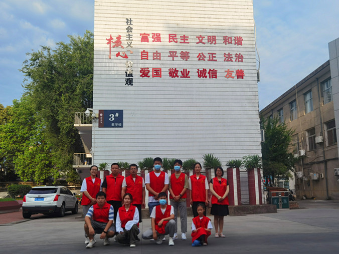 7月17日,学校组织党员师生、暑期留校学生,在市委十字、市政府丁字路口开展“车让人·人守规”文明交通志愿服务活动。
