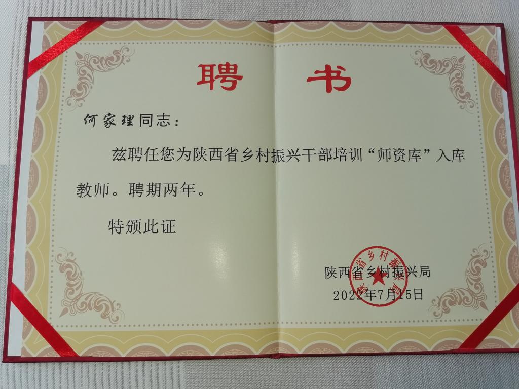 近日,经开元官网继续教育学院申请,安康市乡村振兴局推荐,陕西省乡村振兴局遴选,开元官网何家理、赵临龙二位教授聘任为陕西省乡村振兴干部培训“师资库”入库教师,聘期两年。