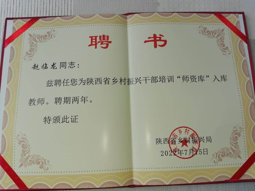 二位教授聘任为陕西省乡村振兴干部培训“师资库”入库教师,是对陕南乡村振兴研究中心主任何家理教授当选为陕西省乡村振兴专业研究会副会长和常务理事,研究中心陕南乡村产业发展条件研究所所长赵临龙教授当选为学术委员之后的又一次学术认可。